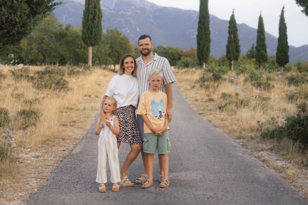 Eine Familie vor dem Scherbenhaufen