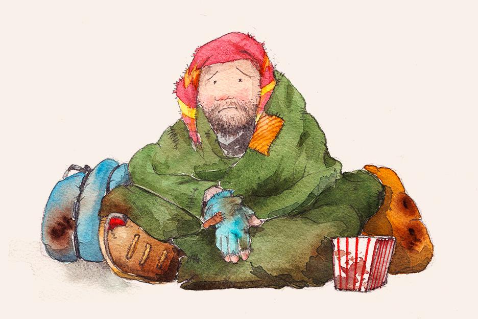 «Ich weiss nicht», antwortet er und zuckt mit den Schultern, «in manchen Städten gibt es einen Treffpunkt für wohnungslose Menschen. Dort bekommen sie ein Mittagessen oder können auch zum Übernachten bleiben. Vor allem im Winter ist das hilfreich, wenn es draussen kalt ist.»